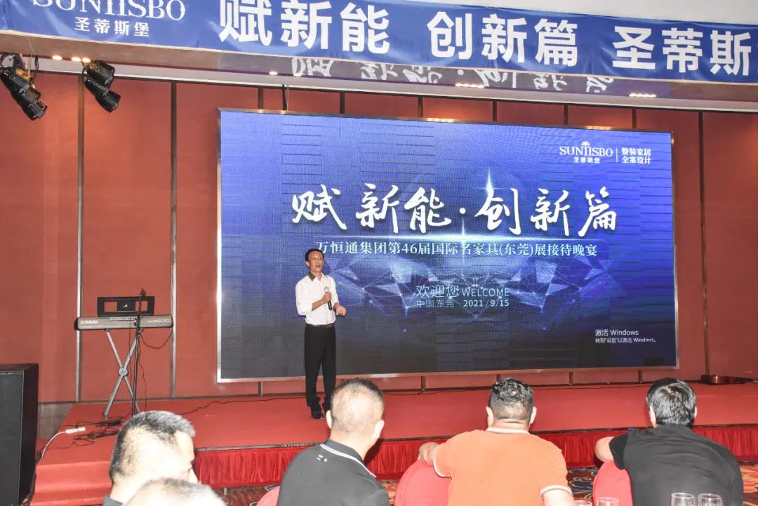 9月15日晚6时许,以“创新能,赋新篇”为主题的yy易游体育集团第46届国际家具展接待晚宴在虎门丰泰花园酒店举行。