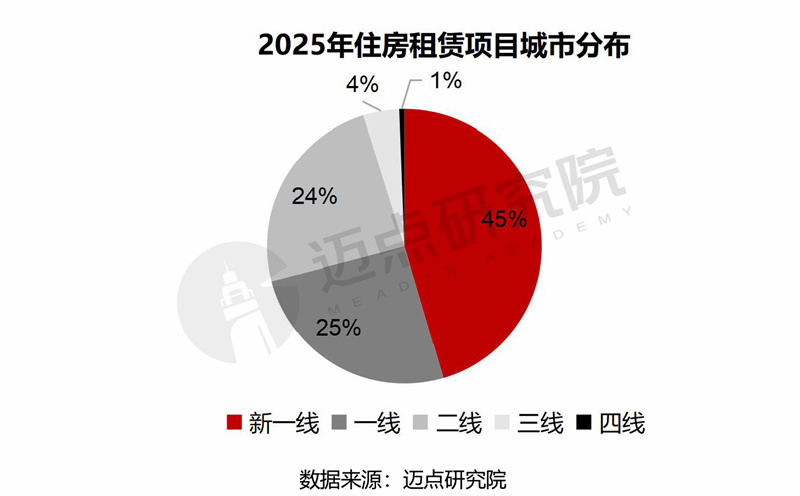 新一线城市占比最高,为45%;一线城市占比25%,二线城市占比24%。一线城市是住房租赁市场的基本盘,新一线和强二线城市是住房租赁的主战场。