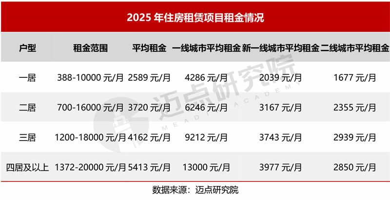 租金定价:一居到二居溢价最高,新一线城市为“成本与发展”的平衡点。