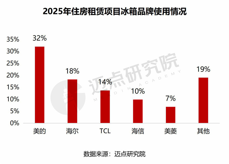美的和海尔依然领跑,TCL占比大幅提升。整体形成了由美的、海尔、TCL构成的第一梯队,海信、美菱为补充的第二梯队格局。其他品牌占比明显下降,主流品牌使用率升高。